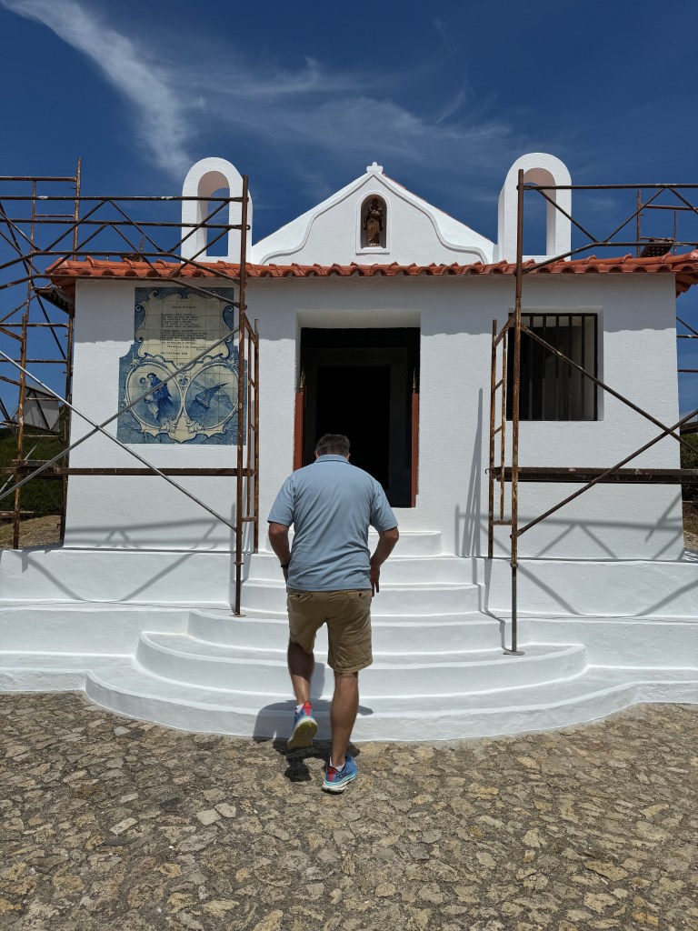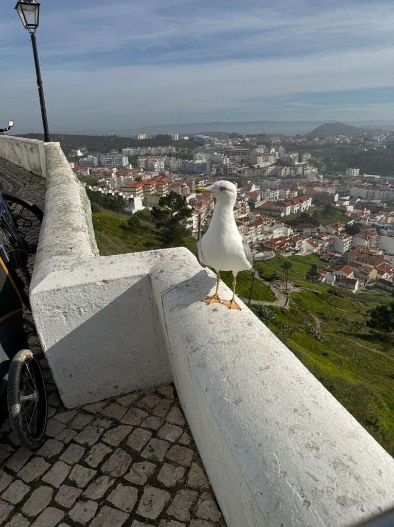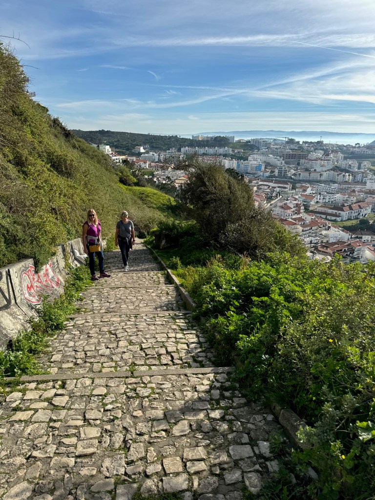 Once we’d finished our breakfast and introduced ourselves to the welcoming group of expats, we began the trek up to Sitio. The funicular is currently out of service while a public works project is underway to stabilize the cliff above the tracks – so we hoofed it to the top. The walking trail up to Sitio from Nazaré is fairly steep but mercifully short and offers great views.