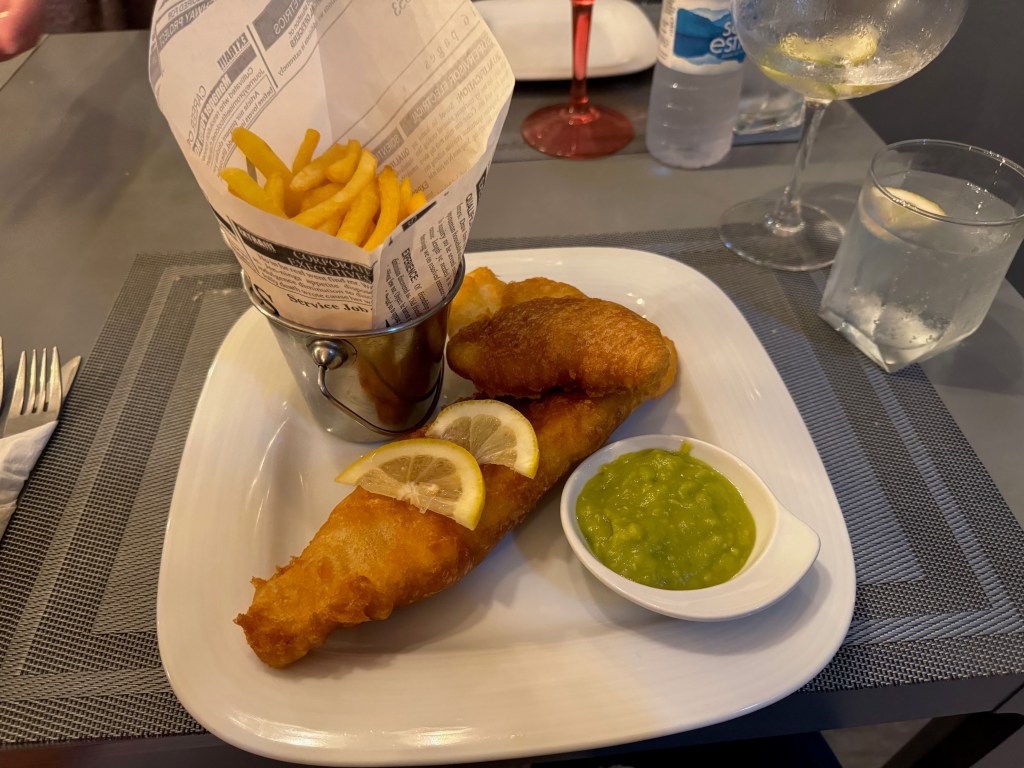Even though we’d already had a full day by the time we got back home, the day was not through with us. There’s a restaurant in SMP called Waves that’s owned by a very nice British expat named Mary. Friday nights at Waves are proper Fish ‘n’ Chips. Jill booked us into Waves for dinner where we had a fantastic meal and chatted with Mary as she was making her rounds of the patrons.