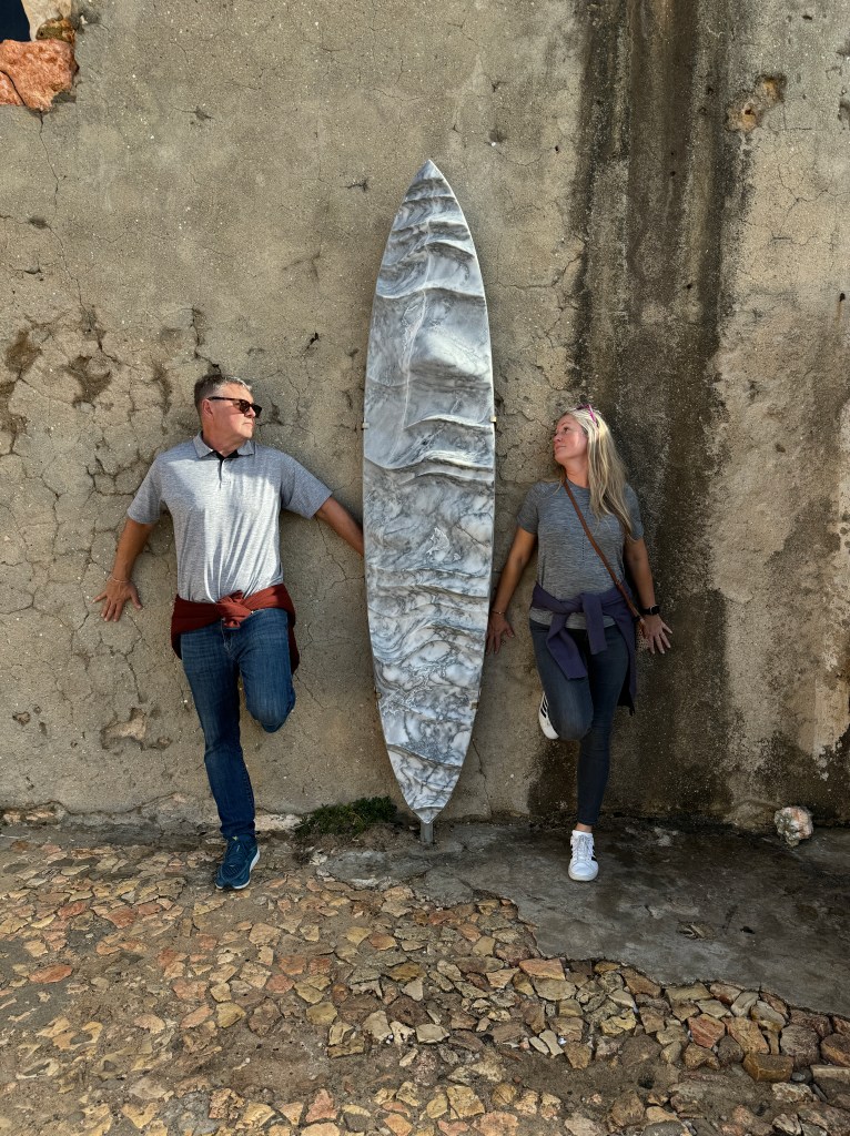We had an hour or so to kill before we were to meet Jane and Steve, which gave us time to show Stephanie the surfing landmarks that appear in “100 Foot Wave”.