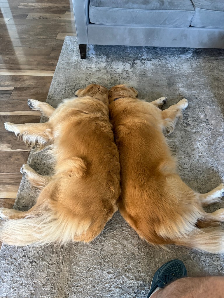 Woody and Bulleit are always happy to sunbathe on our patio after their long morning walk. We usually keep the sliding door to the patio open so that they can avail themselves of the warm tile.