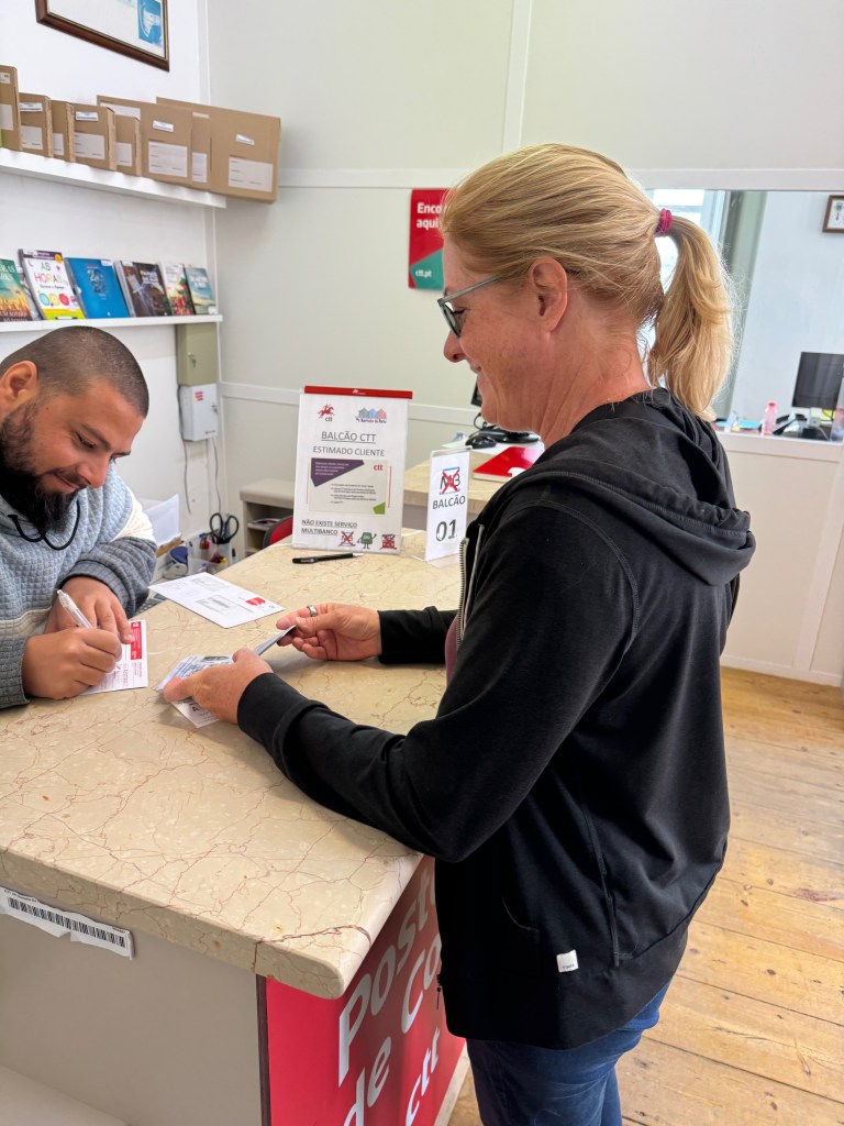 That’s not to say we didn’t make solid forward progress on getting dialed-in to life in Portugal. We now have 900 index cards, for making flashcards to practice Portuguese, courtesy of Amazon Germany. The index cards were successfully delivered to our back patio while we were out having lunch with friends in Nazaré, putting into question the horror stories we’ve heard about last-mile delivery challenges. We also successfully tested out the CTT locker system, called Locky, by having an air filter delivered there from Amazon Germany (I’ve been a little sneezy, which I attribute to the plethora of blooming things all around us). It’s a pretty slick system. We have the order sent to CTT’s central Locky office in Lisboa with our name and a unique code, which identifies our preferred locker location. CTT routes our package to our preferred locker location and, once the package has been deposited in the locker, sends us the unlock code for our locker. Once they send us the code we have 5 days to retrieve our package from the locker. The only limitation appears to the maximum dimensions of the biggest locker in the bank of lockers which is 64cm X 54cm X 45cm. With these two successful deliveries under our belt, we have already started keeping a running Amazon Germany cart and will be making periodic orders. Free shipping via Amazon Prime is not a thing here, so we will consolidate items in our cart and monitor the shipping cost until we find the sweet spot. On our first two Amazon Germany purchases, shipping has been in the €7.50-€10 range.