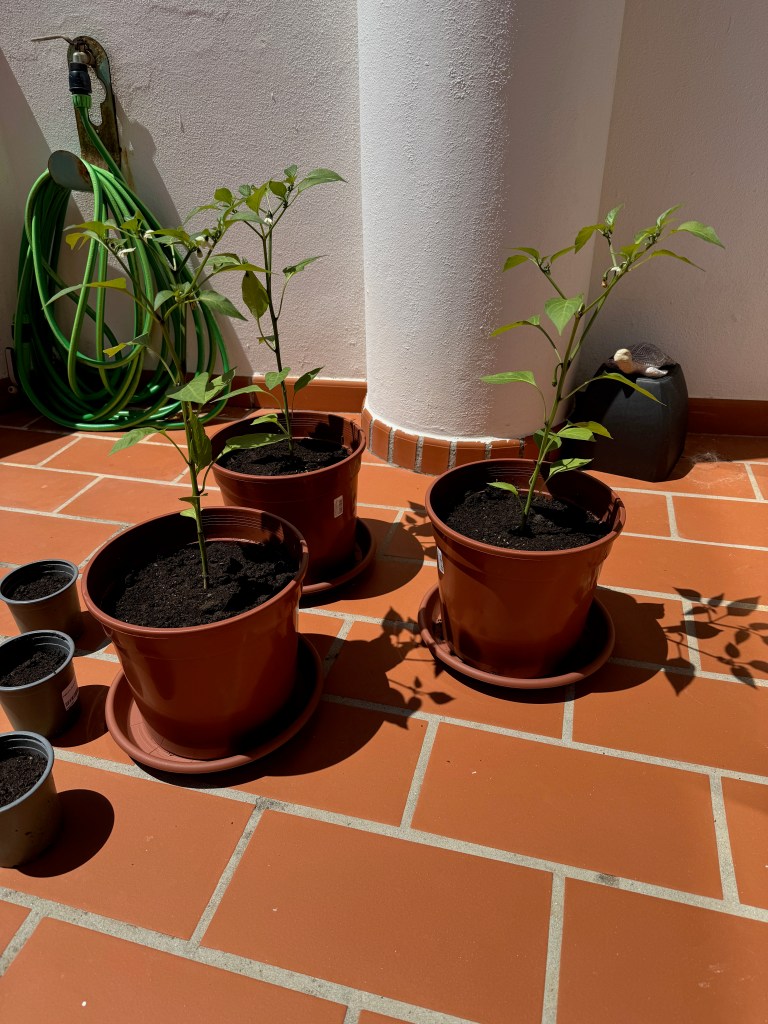 • Pimentos – Peppers (decidedly NOT jalapeños, but we are remedying that as fast as we can with the plants on our patio)