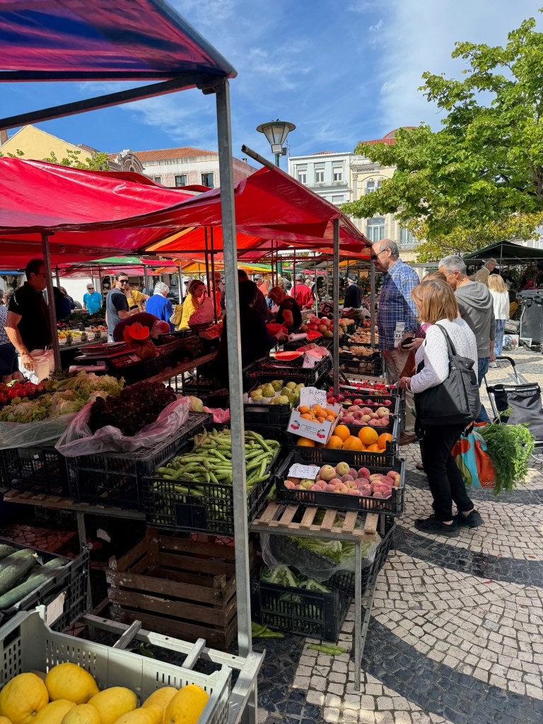 We’ve been trying an experiment where we eat as many different types of fruits and vegetables as we can each week, which is fun because the selection at the local fresh market is pretty amazing. We are still eating meat, but thinking of meat as more of a condiment than a focus of the meal. Our local market in SMP is really good, but yesterday we went to the fresh fruit market in Caldas da Rainha, which was next level.
