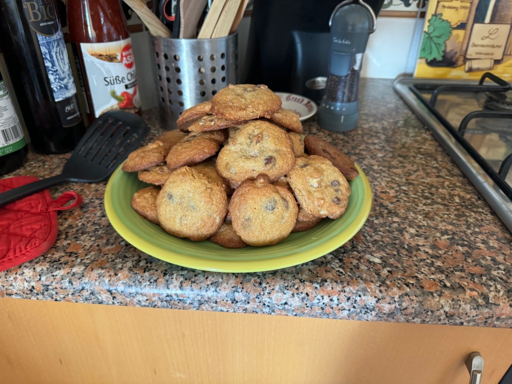 Our daily routine starts with a cup of coffee and our daily word games. I do Wordle, Connections, Quordle, and Octordle. Jill does all of those plus Strands. That’s usually enough to get us through a full cup of coffee. And Woody and Bulleit, who are quite serious about their morning walk on the beach, are pretty good at lettings us know if we are behind schedule. We scarf down a cup of pre-walk Greek yogurt (W&B are supportive of this minor delay because they get to lick the yogurt cups clean) and we are off!