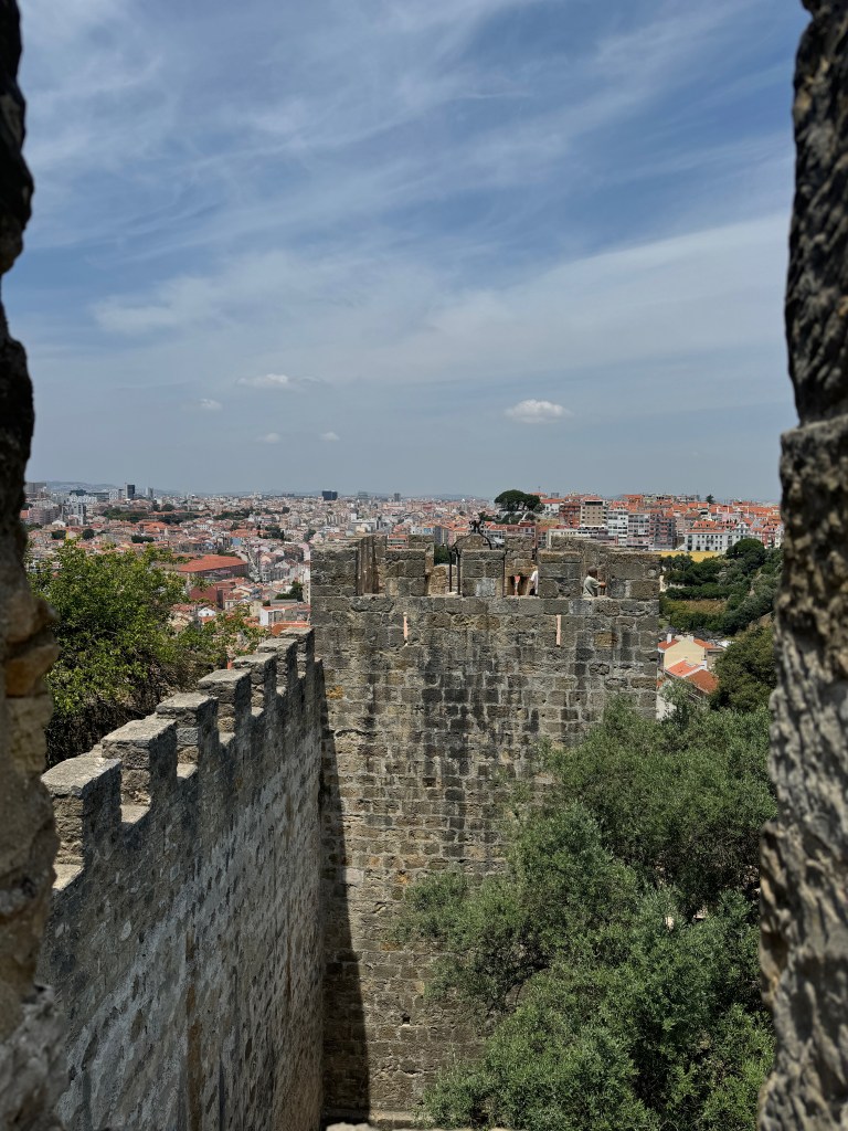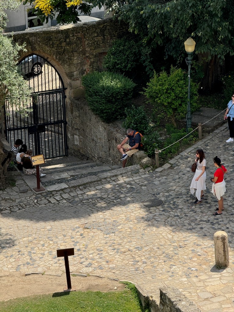 It turns out that in my advancing years I’m becoming afraid of heights. I stayed behind and read the Economist on my phone while Jill took Eileen and Lori up to the parapets for the best views of Lisboa